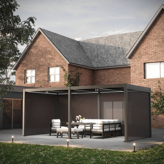 Heavy Duty Grey Aluminium LED Pergola Mid-Beam Louvered Shutter Roof + Windscreen 3 x 6m