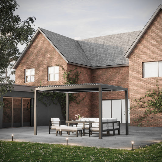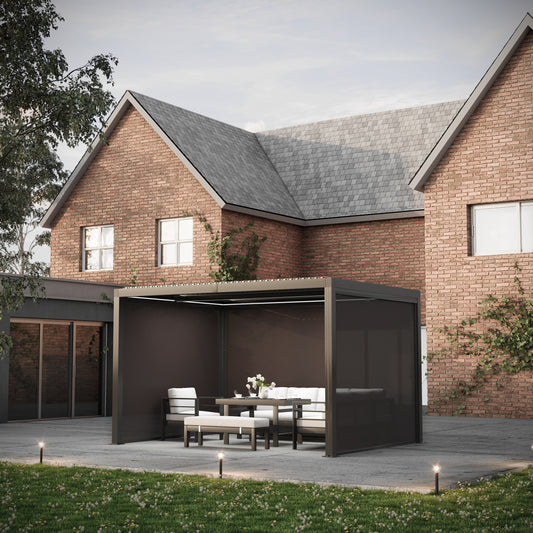 Heavy Duty Grey Aluminium LED Pergola Mid-Beam Louvered Shutter Roof 3 x 4m
