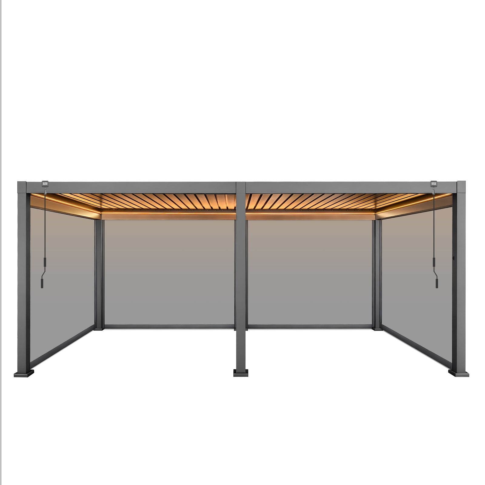 • Four Retractable Windscreens – 3m adjustable screens for added privacy and wind protection (the 4 screens are generic and can be used anywhere on the pergola. Please note, the back and front take 2 screens and the sides take 1)
